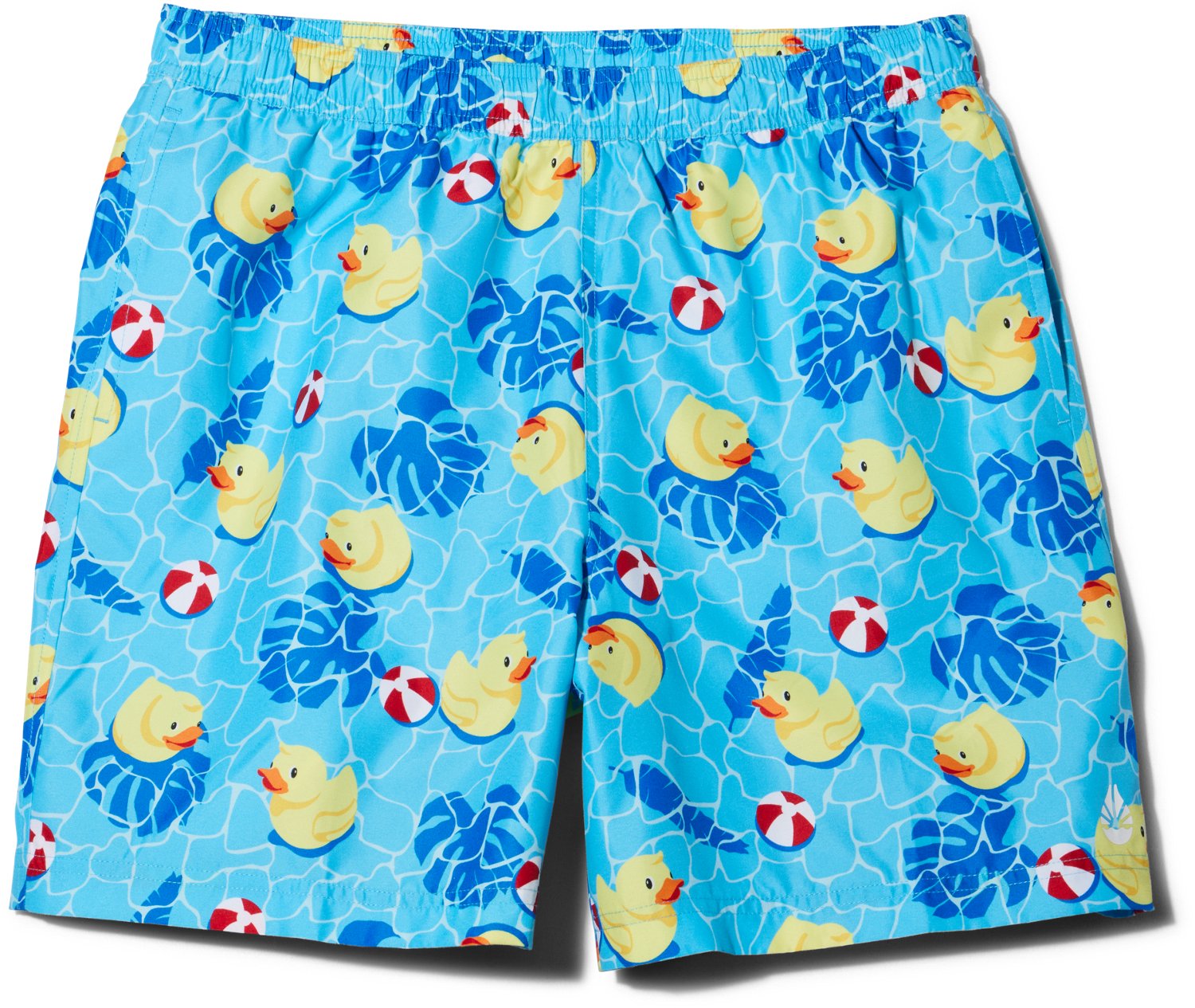 Embrace the beach life with the O'Rageous Men's Ducks Printed Volley Shorts. These lightweight swim shorts are made of polyester and feature a stay-put adjustable waistband that won't weigh you down. Stand out with the fun-loving duck print, and shield your skin from UV rays with the built-in UPF 30 sun protection.