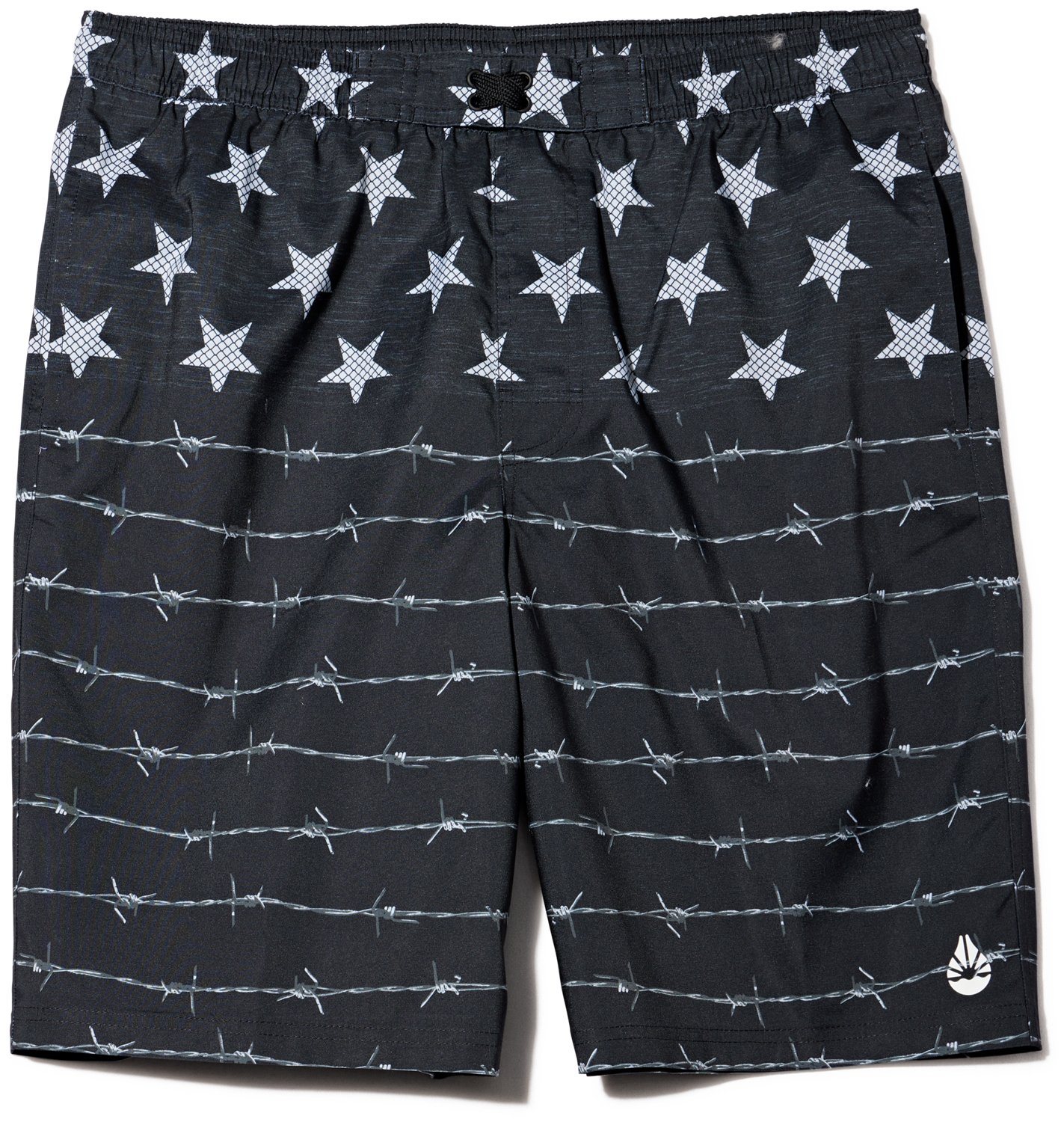 Hit the beach in style with the O'Rageous Men's Flag Printed E Boardshorts. These adjustable boardshorts stay in place and are made with a stretchy polyester, cotton and spandex blend so you can play and adventure confidently. The flag print helps you stand out.