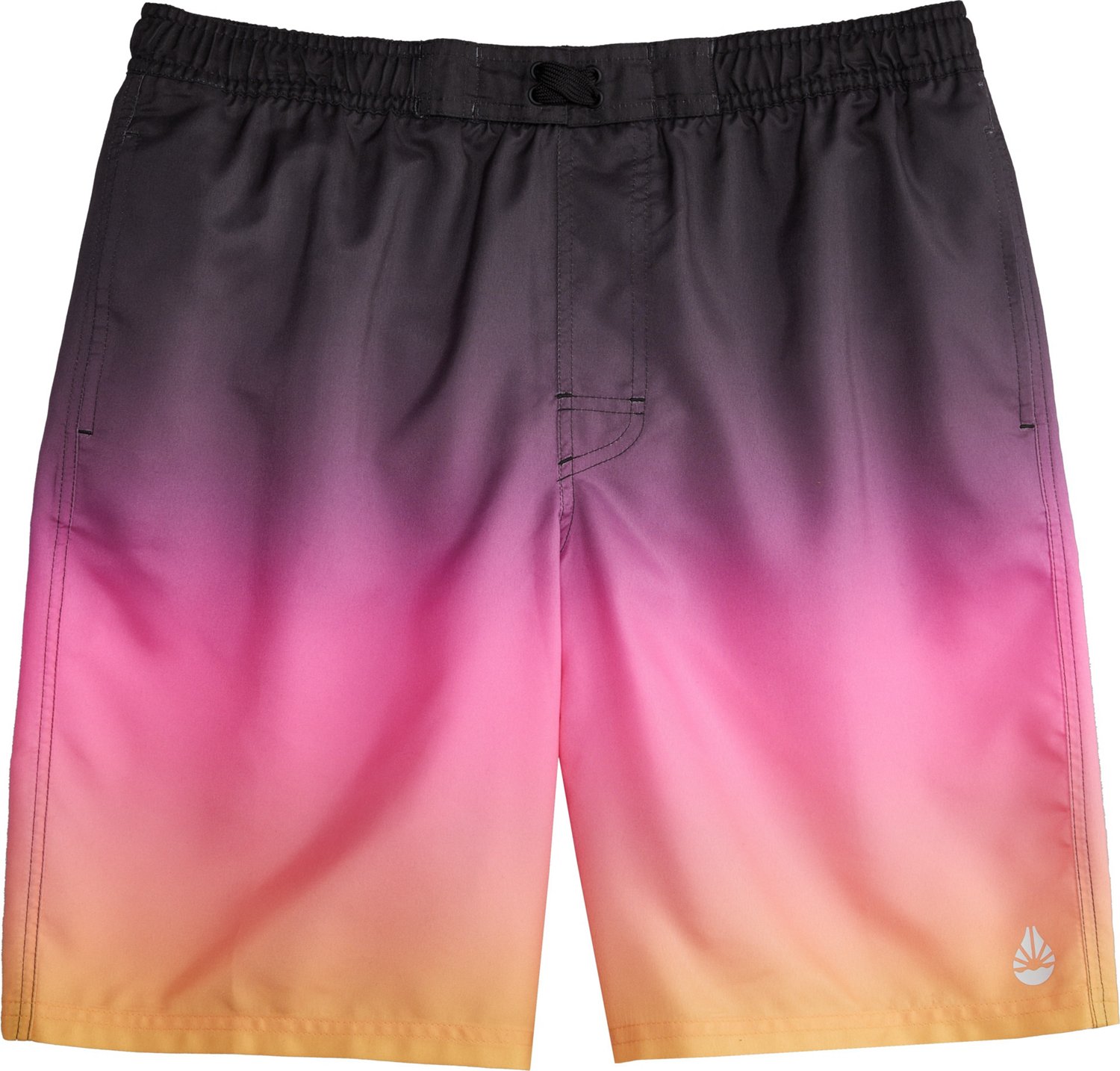 Showcase your stylish side off at the pool sporting the O'Rageous Men's Tri Ombre Print Board Shorts 9 in. The 100% polyester construction delivers comfort, while the UPF 30+ protection helps keep your skin safe from UV rays. An elastic waistband with a drawstring lets you tighten or loosen the fit, and the ombre stripe print adds style.