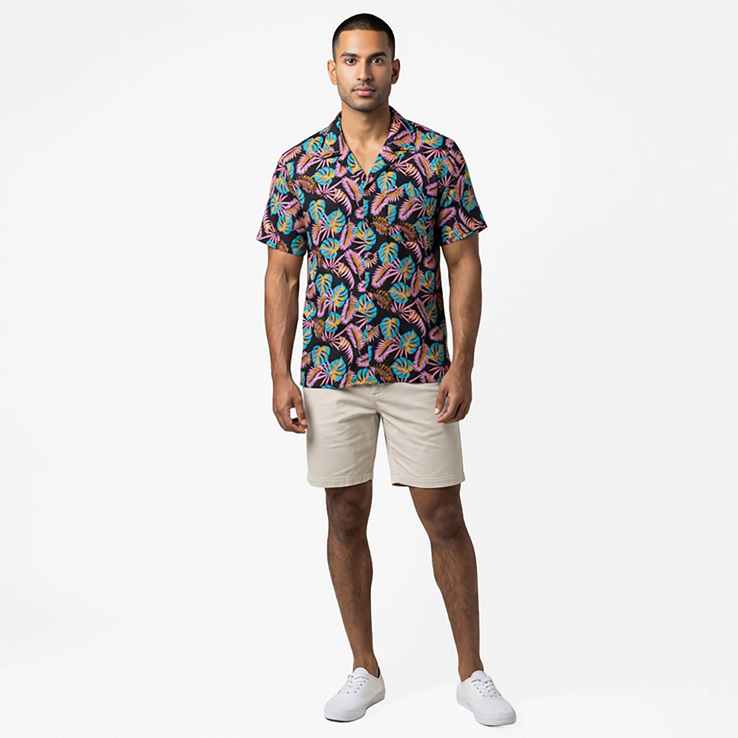 O'Rageous Men's Palm Floral Cabana Printed Short Sleeve Swim Shirt