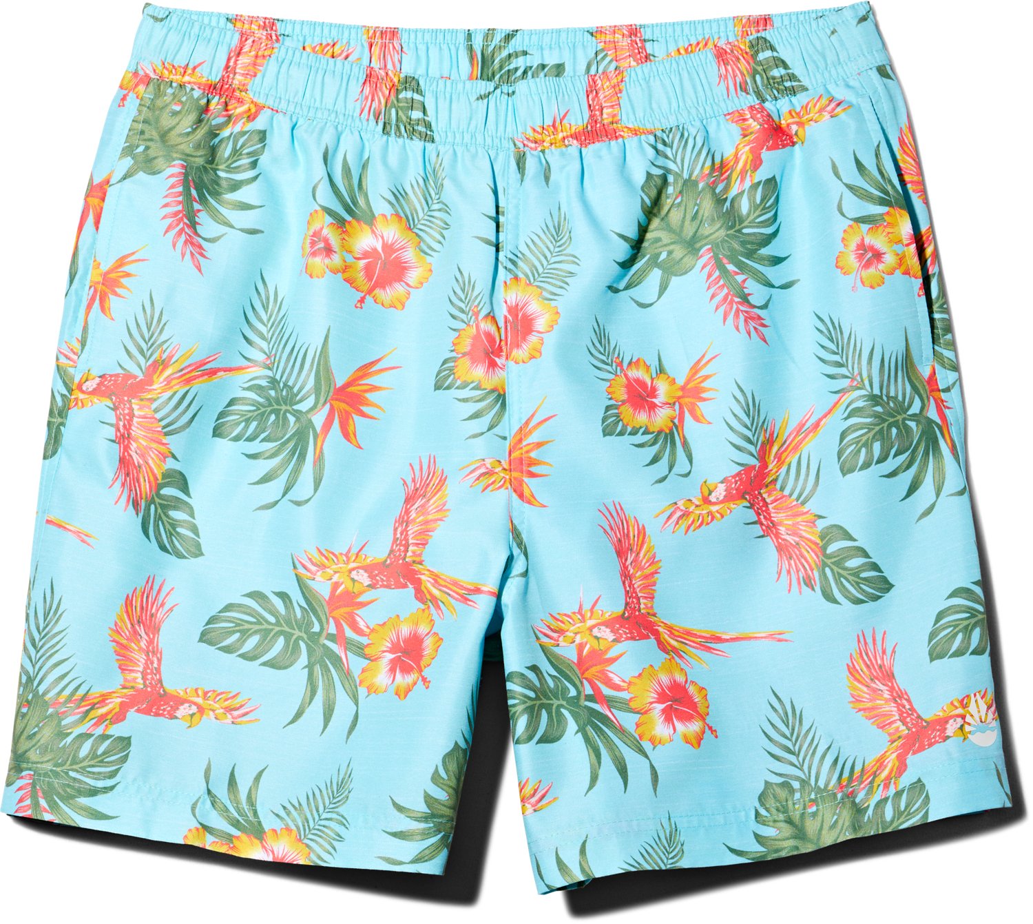 Embrace the beach life with the O'Rageous Men's Parrot Printed Volley Shorts. These lightweight swim shorts are made of polyester and feature a stay-put adjustable waistband that won't weigh you down in the water. The parrot print creates a fun-loving look that helps you stand out, and the UPF 30 sun protection shields your skin from UV rays in the water or on land.
