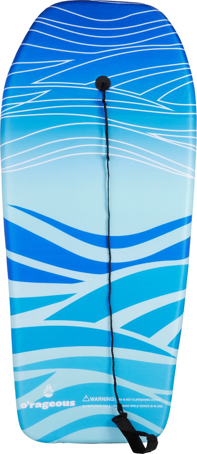 Take on the open water with confidence when you ride on the O'Rageous Ocean Waves 41in Body Board. This short board is made of buoyant foam to help you stay afloat while riding the waves. A hook-and-loop strap secures to your wrist or ankle to help you retrieve the board after a wipe-out. Watery graphics add a stylish look.