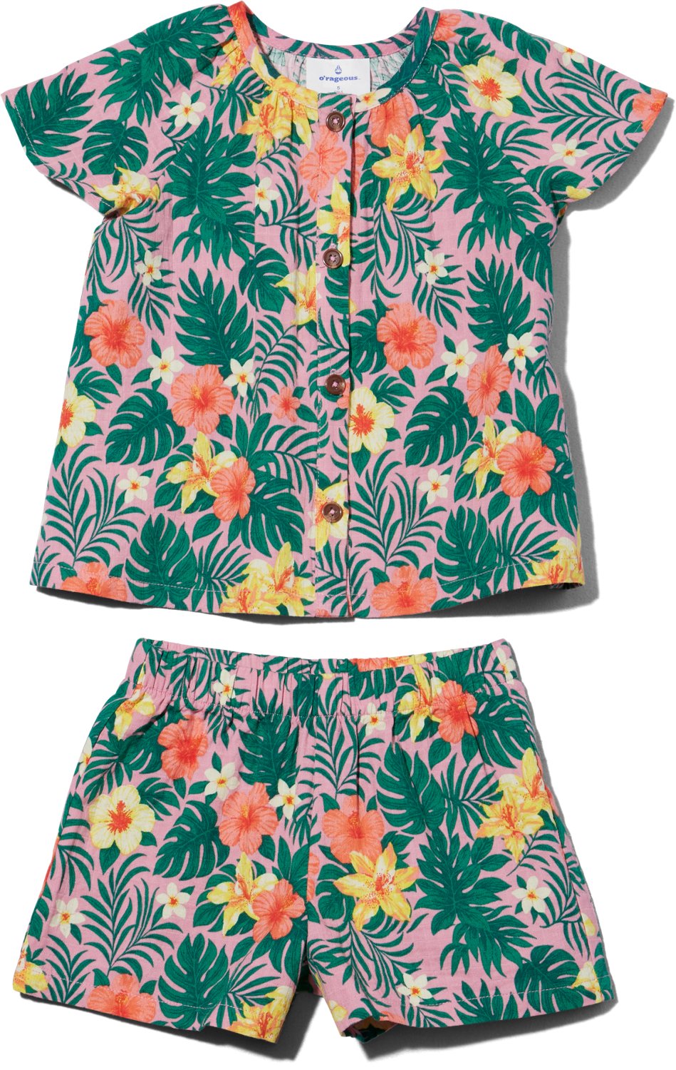 Have your little one looking their best when they wear the O'Rageous Toddler Girls' Resort Cabana Set. It is made of a 100% cotton. The UPF 50+ rating provides sun protection, and its dobby crinkle creates a unique texture. The tropic floral graphics add a sweet touch.