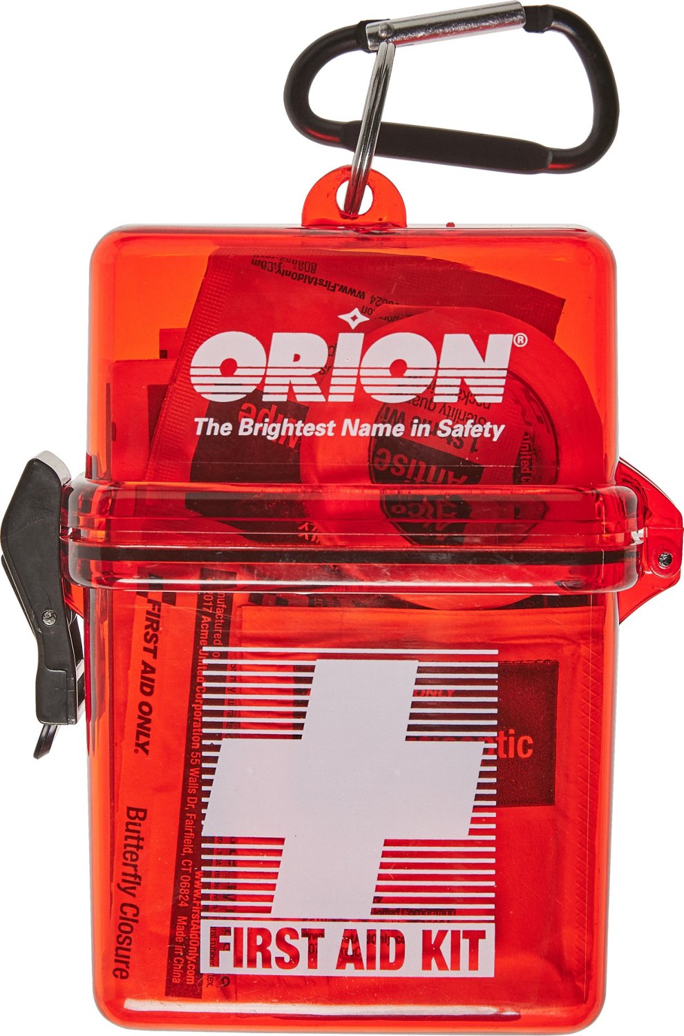 Stay prepared for emergencies on the go with the Orion Watertight 1.0 First Aid Kit. This kit delivers an assortment of first aid supplies and comes with 24 pieces. The case boasts a polycarbonate construction for durability and an O-ring seal for watertight protection, while the design encourages easy storage and carrying. Made in USA.