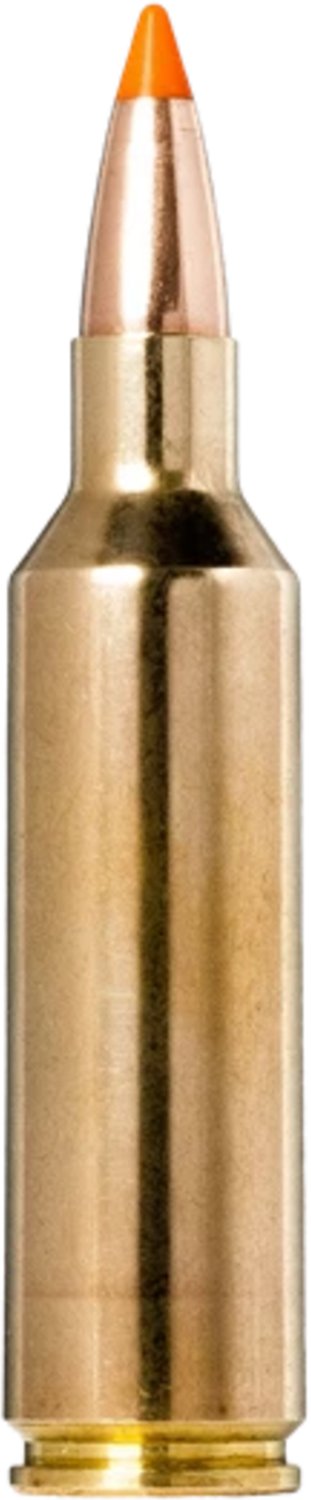 The Norma USA Tipstrike .270 WSM 140-Grain Rifle Ammunition - 20 Rounds is a centerfire ammunition designed for hunting applications. It features a brass casing.