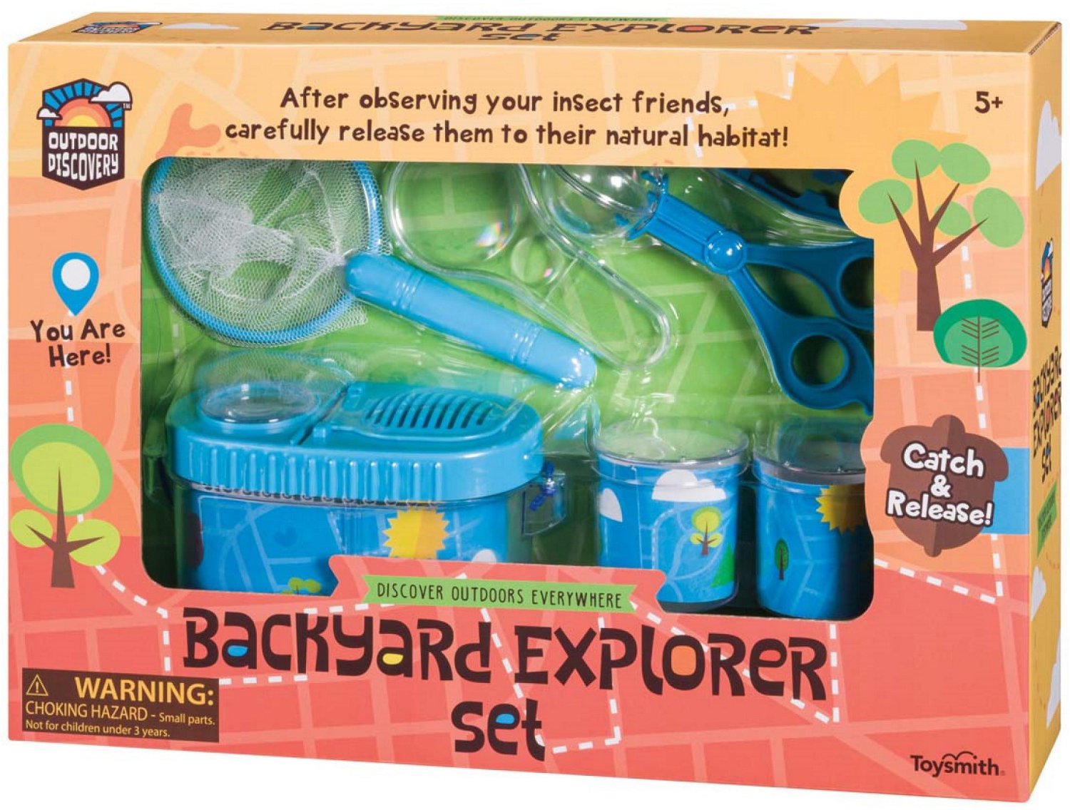 Kids can explore the natural world right in their own backyard with the Outdoor Discovery Nature Explorer Set. This set includes everything they need to safely capture, observe, carry and release backyard bugs. High-quality, nontoxic materials allow worry-free fun.