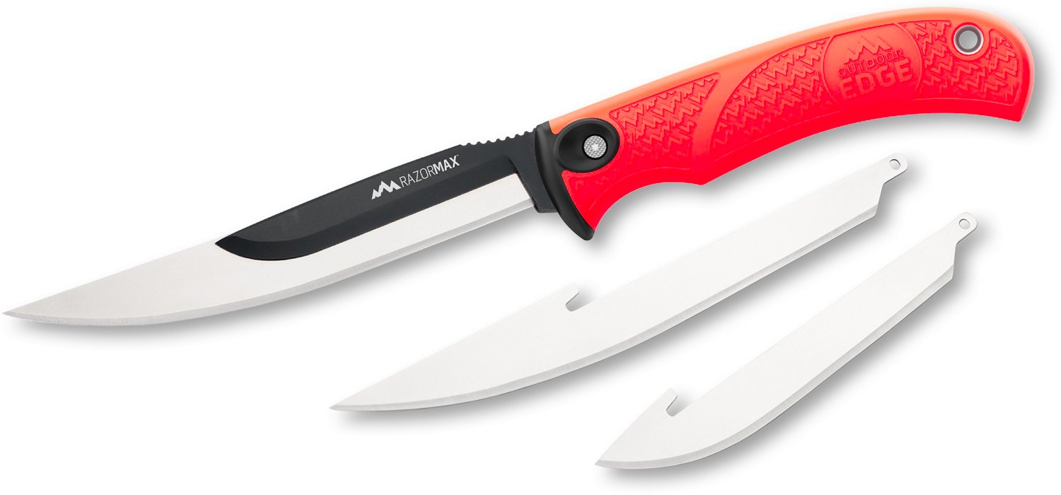 Choose convenience and efficiency on your next hunting trip when you carry the Outdoor Edge RazorSafe RazorMax Knife. The six 420J2 stainless-steel constructed blades help you effectively process game, while the rubberized, TPR coated handle offers comfort and a strong hold. The included plastic safety box and sheath help make cleanup, storage and organization a breeze.