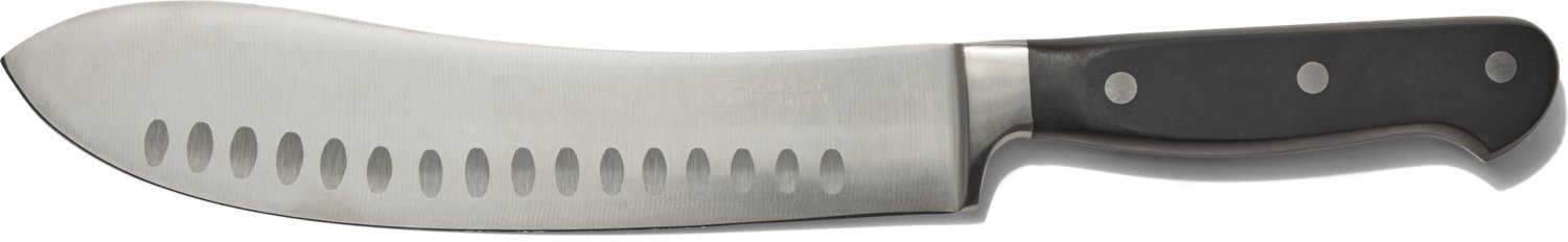 Prepare your next meal with the Outdoor Gourmet Butcher Knife. Its 420 stainless steel construction enhances durability. The full-tang blade with an ultrafine Granton® Edge allows precise slices while preventing meat and vegetables from sticking to the blade, and its triple-riveted POM resin handle offers a secure bond between the blade and handle to create an ergonomic grip. The knife works great for breaking down large portions of meat.