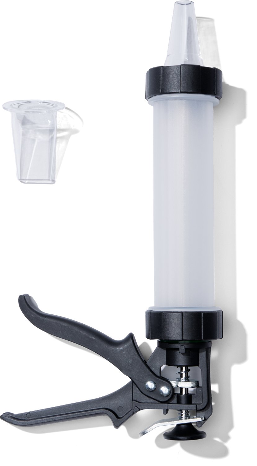 Turn loose ground meat into dehydrator-ready slices and sticks with the Outdoor Gourmet Jerky Gun. This hand-operated tool helps shape jerky meat into consistent portions to ensure even drying. One nozzle makes snack sticks, while the other creates rectangular jerky flats.