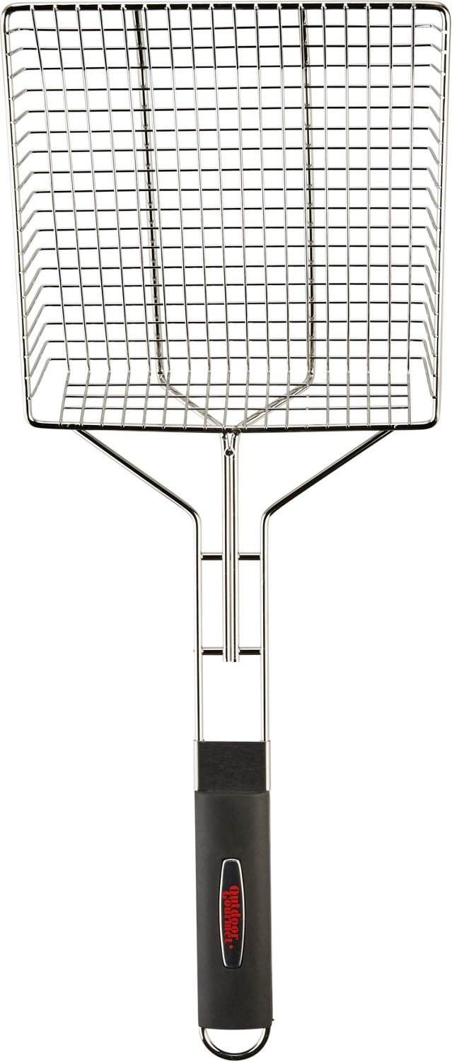 When cooking food in hot oil or other liquids, pick them out easily with this Outdoor Gourmet Square Bill Skimmer. The 8-inch x 8-inch scoop provides a large surface area for skimming, and the food-grade stainless-steel construction offers long-lasting use. The rubber grip on the handle provides a secure grasp.