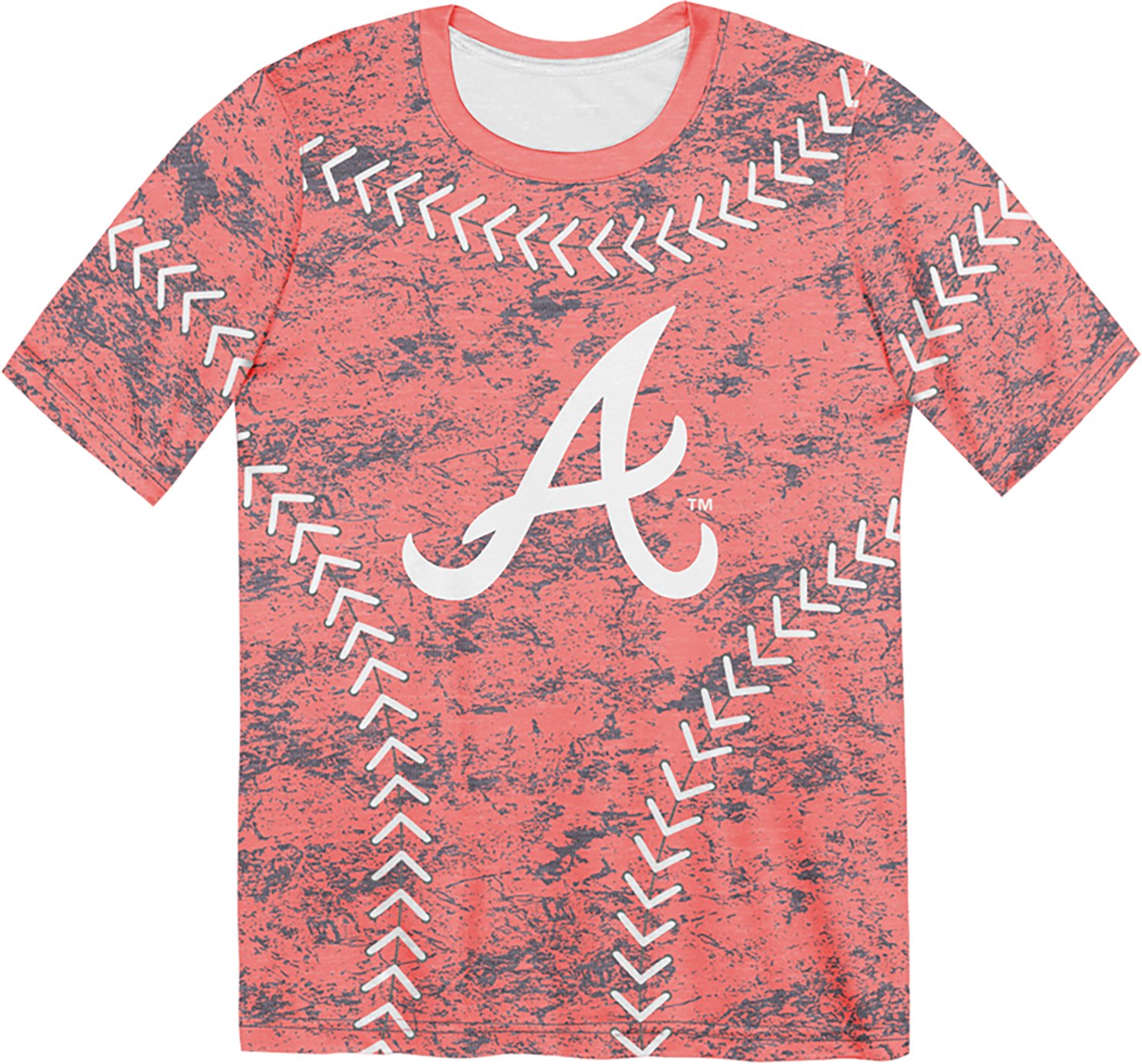 Put your fan pride on display when you wear the Outerstuff Boys' 4-7 Braves Slide Score Bold Sublimated T-shirt. The cotton and polyester fabric provides a comfortable feel throughout the day, and the printed team graphic delivers an eye-catching appearance to fellow fans.