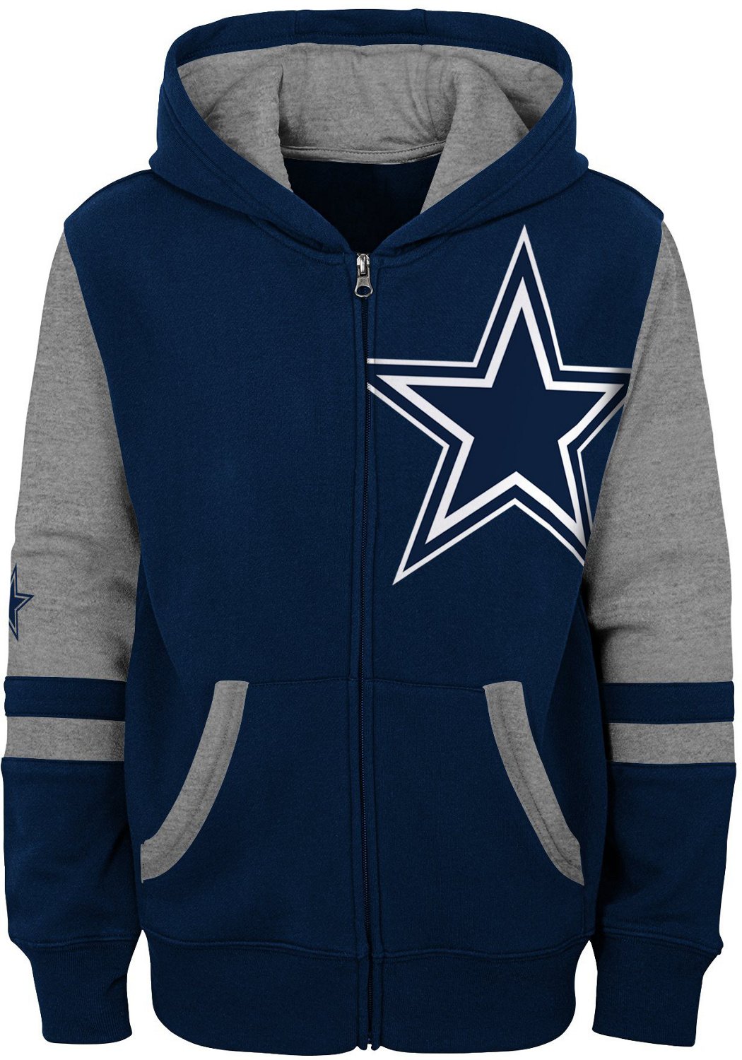 Stay warm headed to the Cowboys game wearing the Outerstuff Boys' Dallas Cowboys Stadium Full-Zip Hoodie. The fleece fabric offers a soft feel, and the team design highlights your fandom. The hand pockets safely hold your essentials.