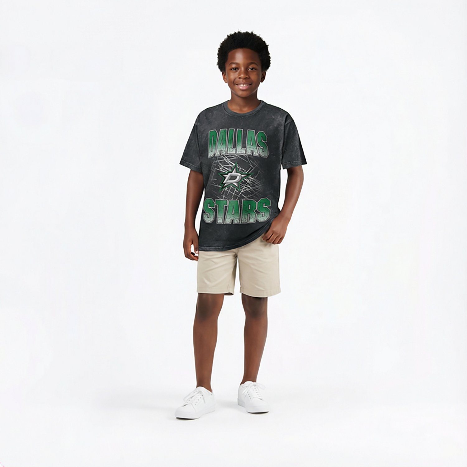 Gear up for game day with the Outerstuff Boys' Dallas Stars Time to Shine Graphic T-shirt. The cotton mineral wash fabric provides a comfortable feel, while the screen-printed graphic shows off your Stars pride.