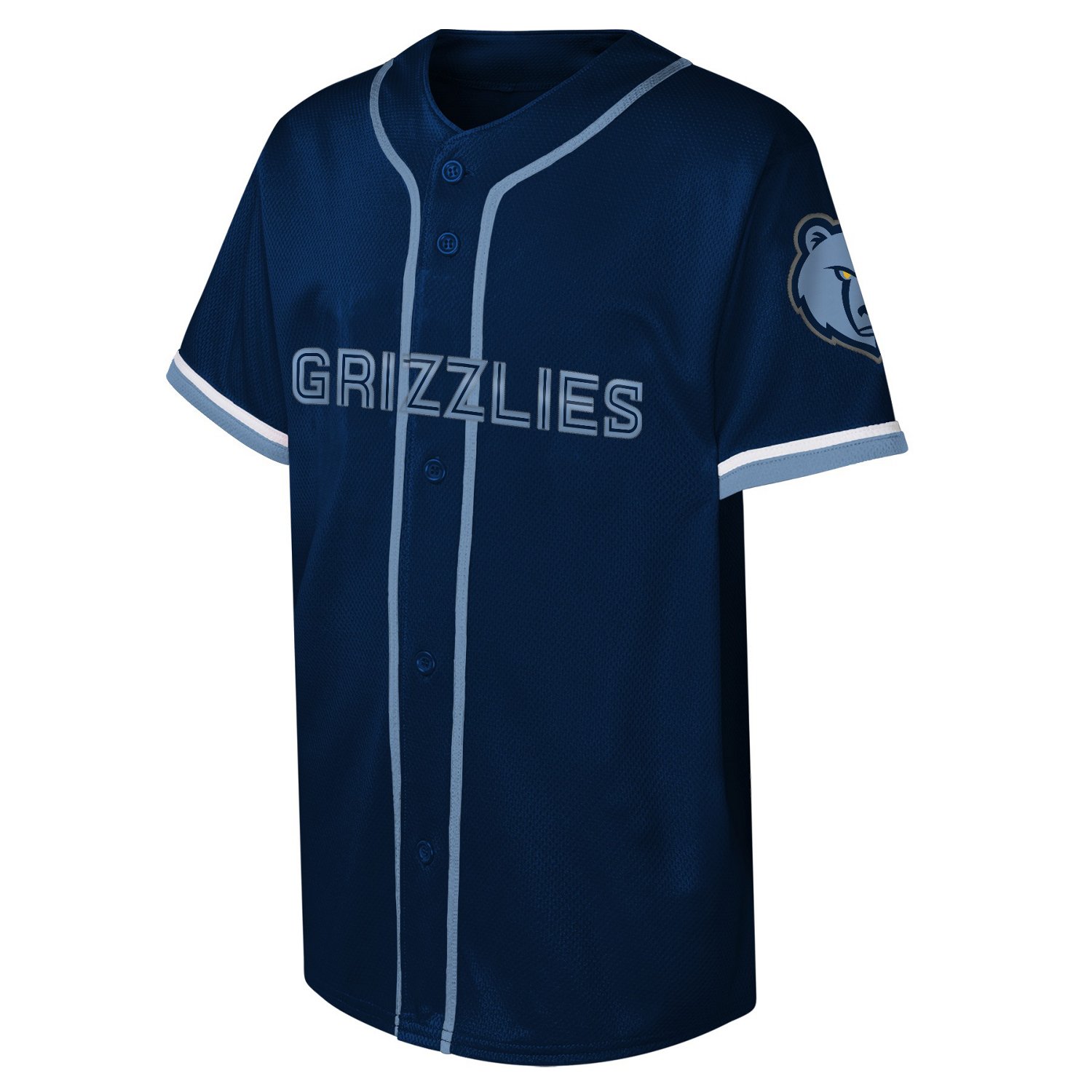 Features the Grizzlies' team name and mascot on the chest