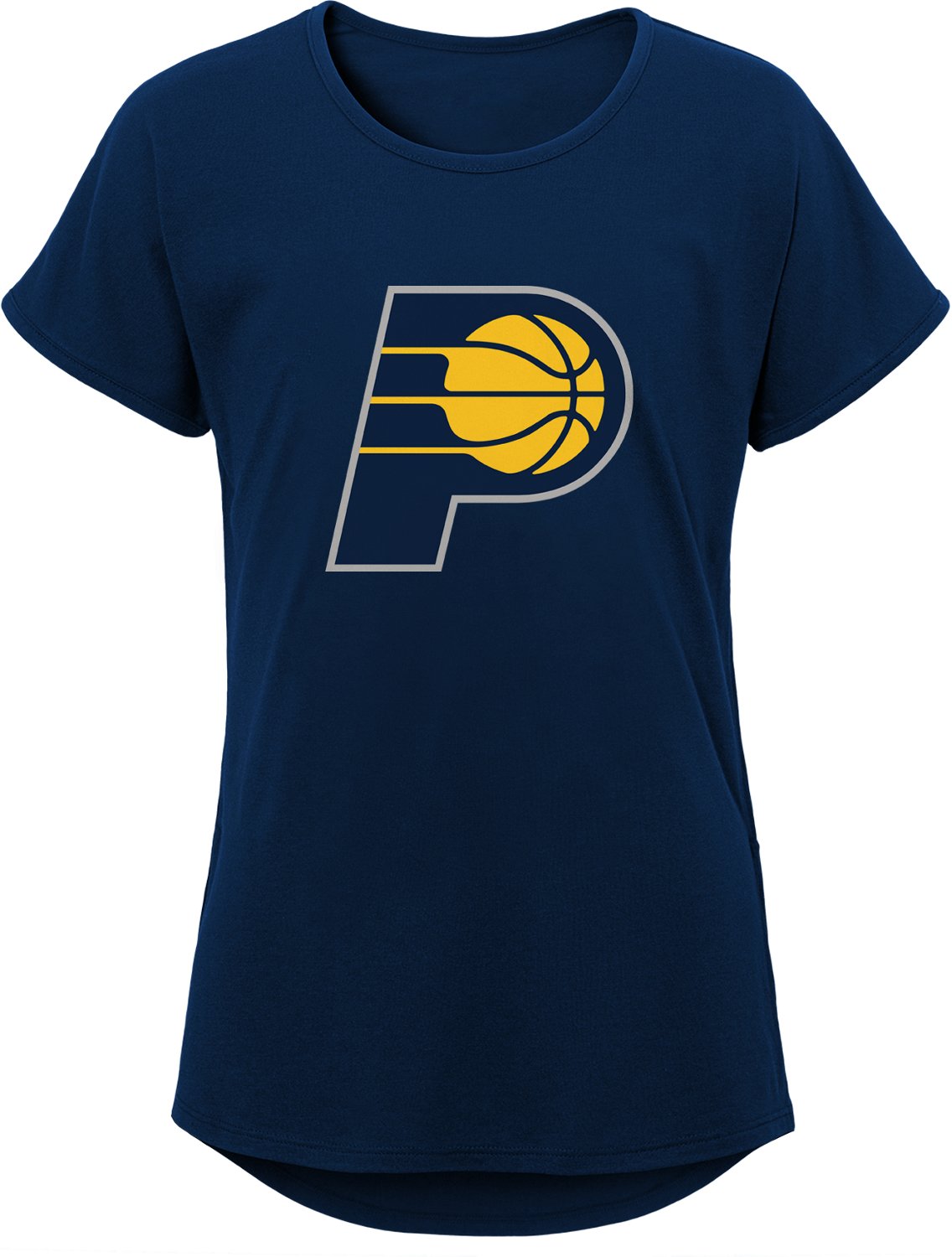 Features a Pacers' wordmark, a basketball graphic and Pacers' logo in a circle graphic on the chest