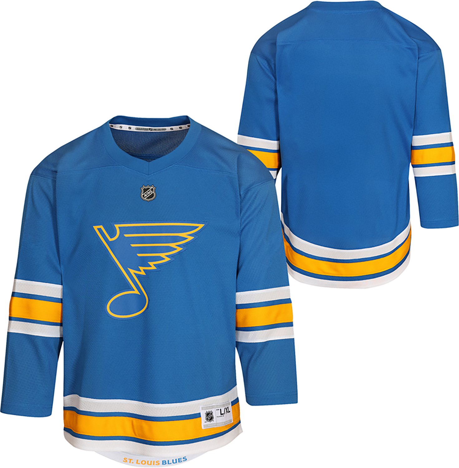 Show your support in comfort and style with the Outerstuff Boys' St. Louis Blues Replica Home Team Hockey Jersey. The air mesh and poly interlock construction is durable and breathable, and the screen-printed team details are bold and durable.