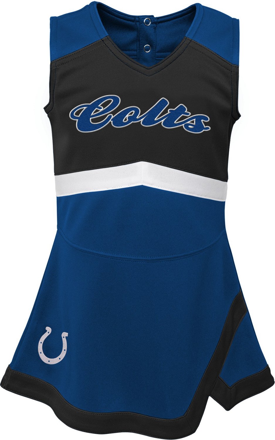 Sport the Outerstuff Girls' Indianapolis Colts TDLR Cheer Captain Cheerleader Jumper to share your love for the Colts. Made with polyester soft pique for comfort, this jumper features a self fabric applique with embroidery to add style. The jumper also comes in the team color with an alternate color, creating a coordinating look.