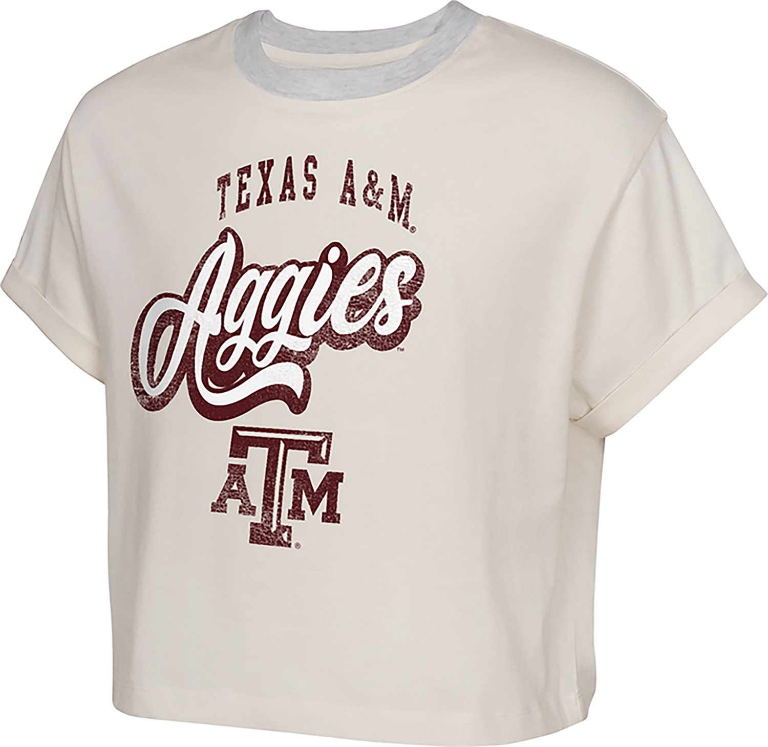 Put your fan pride on display when you wear the Outerstuff Girls' Texas A&M Coin Toss T-shirt. The cotton fabric provides a comfortable feel throughout the day, and the printed team graphic delivers an eye-catching appearance to fellow fans.