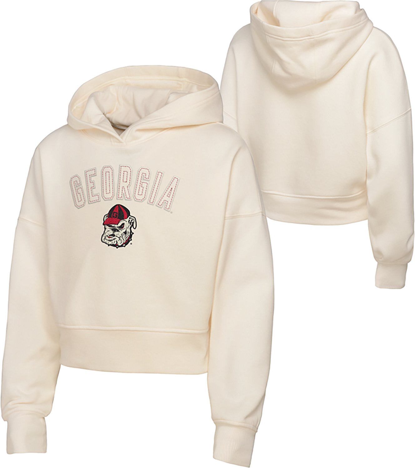 Show your support in comfort and style with the Outerstuff Girls' University of Georgia Bulldogs Blitz Oversized Crop Hoodie. The cotton-polyester construction is soft and durable, and the fabric applique team details are bold and durable.