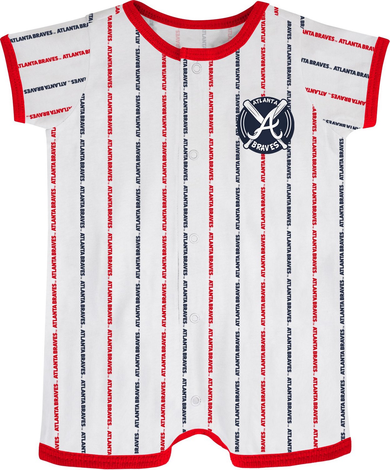 Even at a young age, your little one can show-off his love for the Braves when he wears the Outerstuff Infant Boys' Atlanta Braves Bat Ball Hitter Coverall. The 100% cotton construction provides comfort, and the team logo and pinstripe design highlights a stylish look. The button-down closure allows for easy on/off.