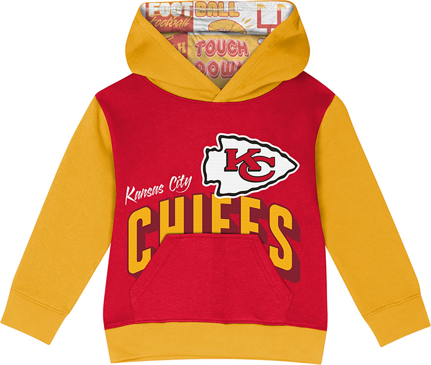 Allover Kansas City Chiefs print inside the hood