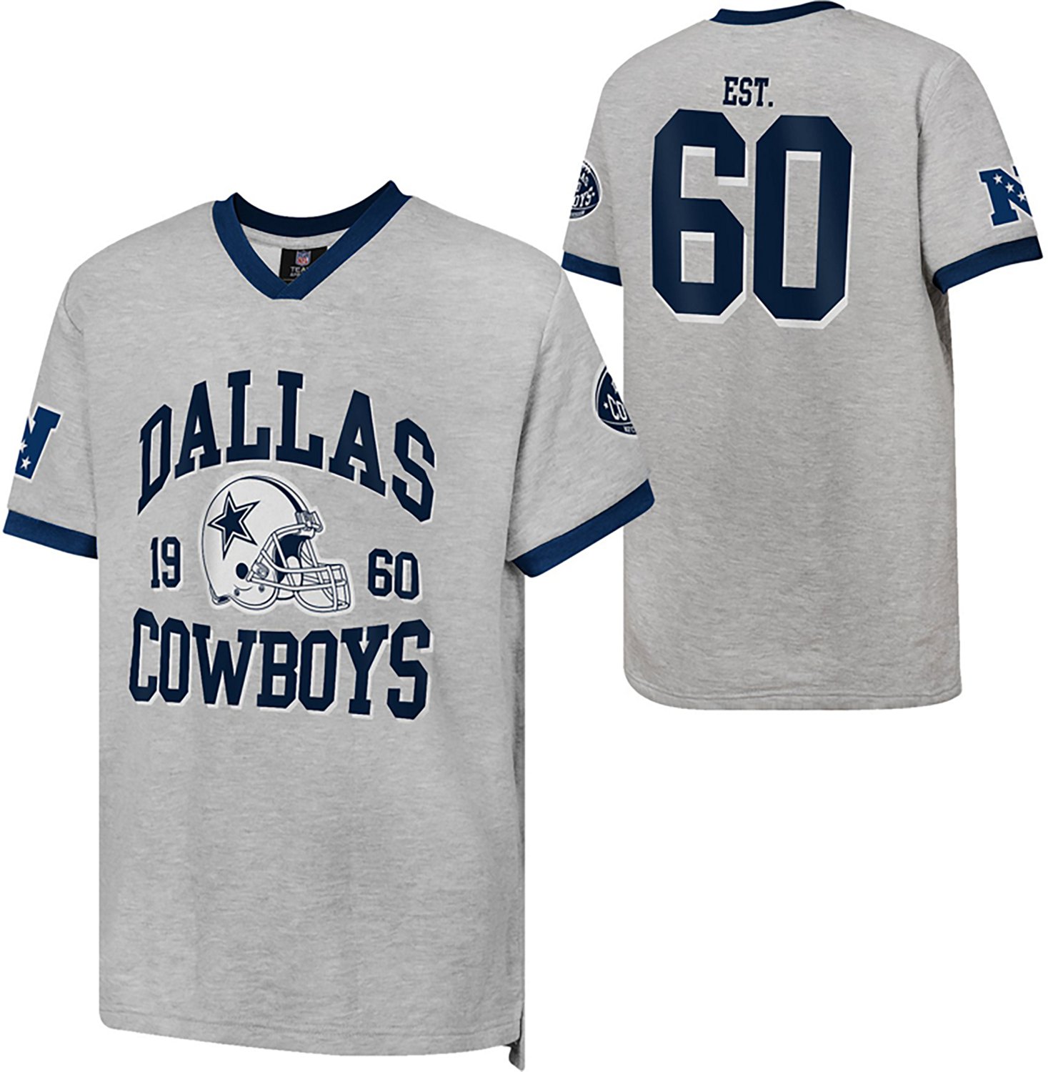 You can celebrate each victory when you throw on the Outerstuff Kids' Dallas Cowboys All Pro Fashion Jersey T-shirt. The T-shirt is made of 100% polyester with short sleeves and V-neck to provide a casual feel and comfortable wear, and the chest features a team name and helmet graphic to showcase love for the Cowboys.