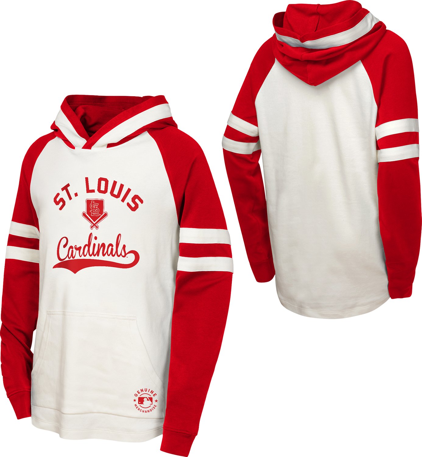 Make other fans jealous when you show up in the Outerstuff Kids' St. Louis Cardinals Knuckleball Colorblock Hoodie. This hoodie sports a bold team logo on the chest that is great for fans of the Cardinals, and the kangaroo pocket allows storage of keys and other items. The hood helps protect you from the elements.