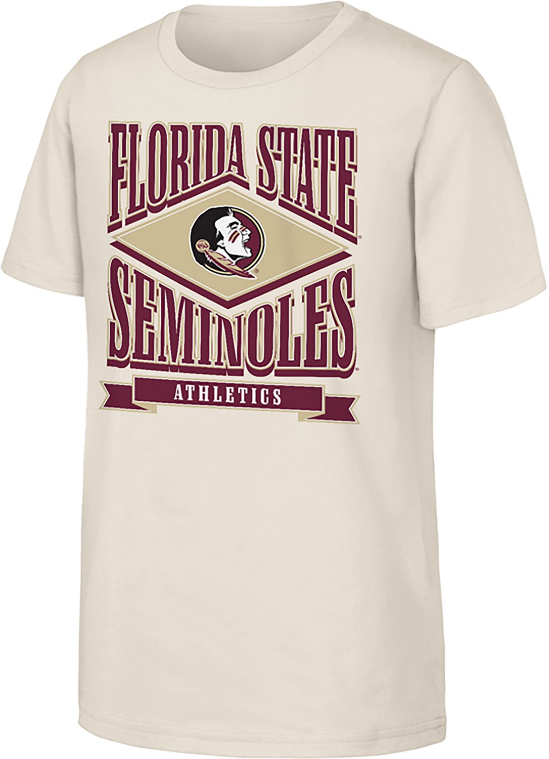 Put your fan pride on display when you wear the Outerstuff Youth Florida State Tribute T-shirt. The cotton fabric provides a comfortable feel throughout the day, and the printed team graphic delivers an eye-catching appearance to fellow fans.