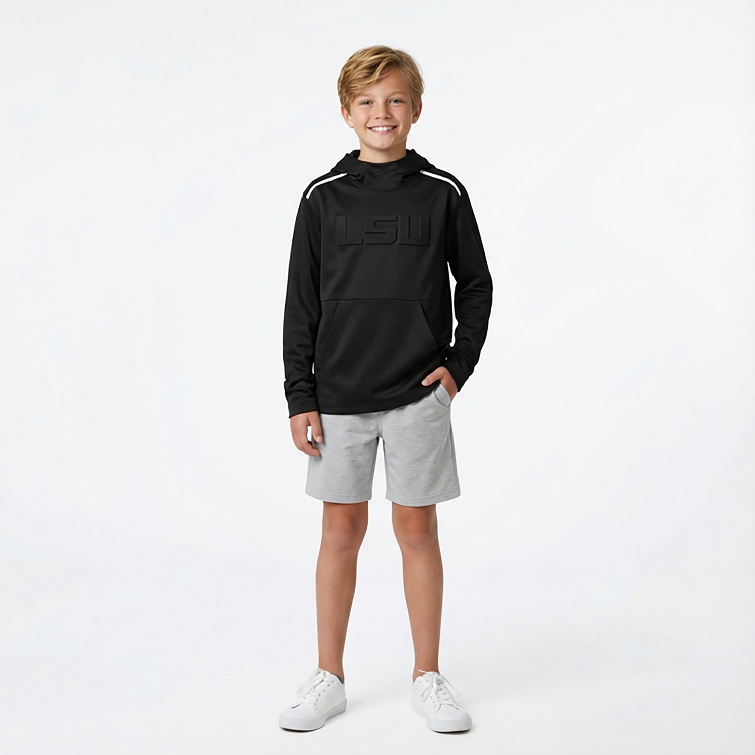 Stay warm while cheering on your team with the Outerstuff Youth LSU Defensive Line Hoodie. The cotton and polyester mesh construction helps keep you comfortable throughout the day, while the team graphic puts your fandom on display.