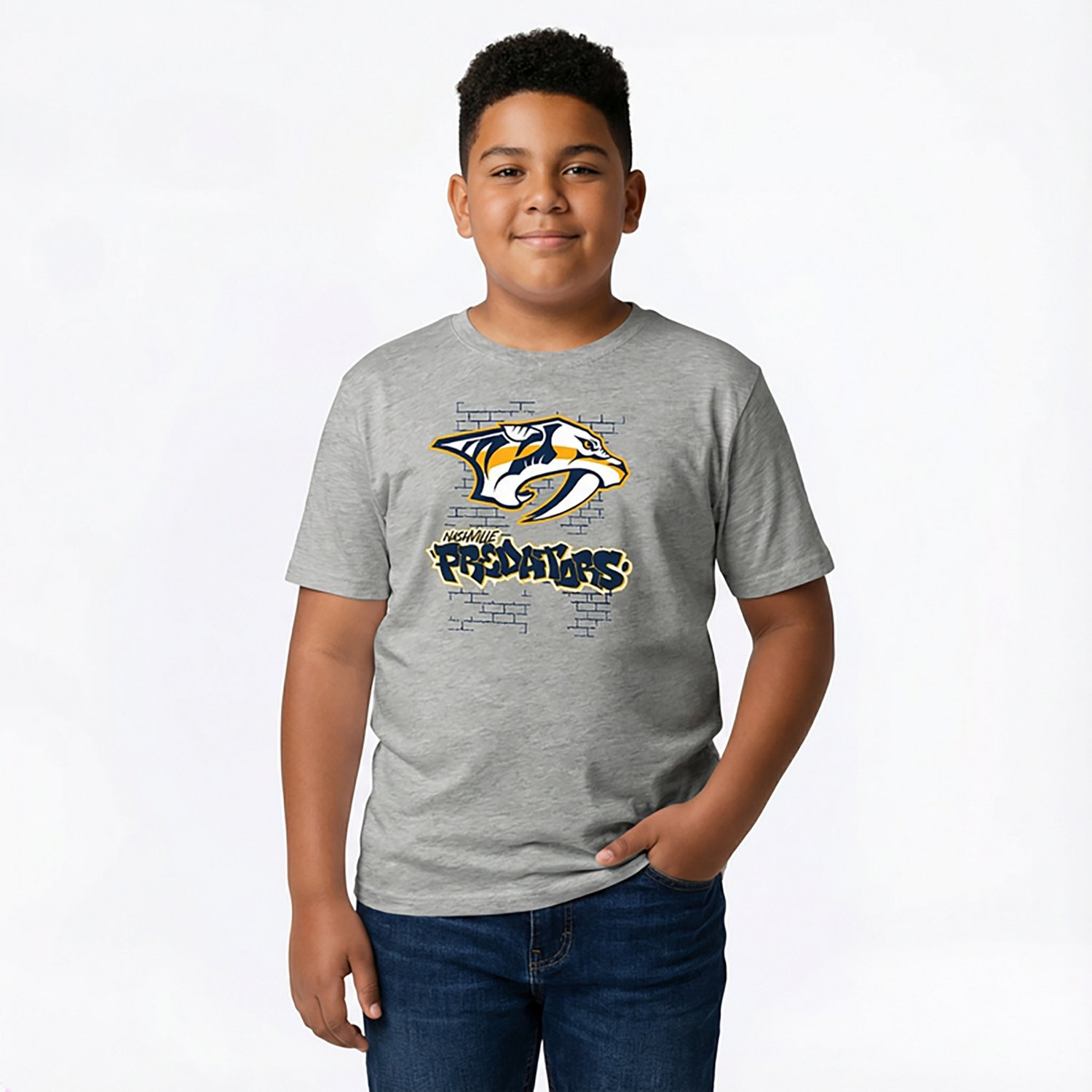 Cheer on your favorite team while wearing the Outerstuff Youth Nashville Predators Graffiti T-shirt. The 100% cotton jersey construction helps keep you comfortable throughout the day, while the screen-printed team graphic puts your fan spirit on display.