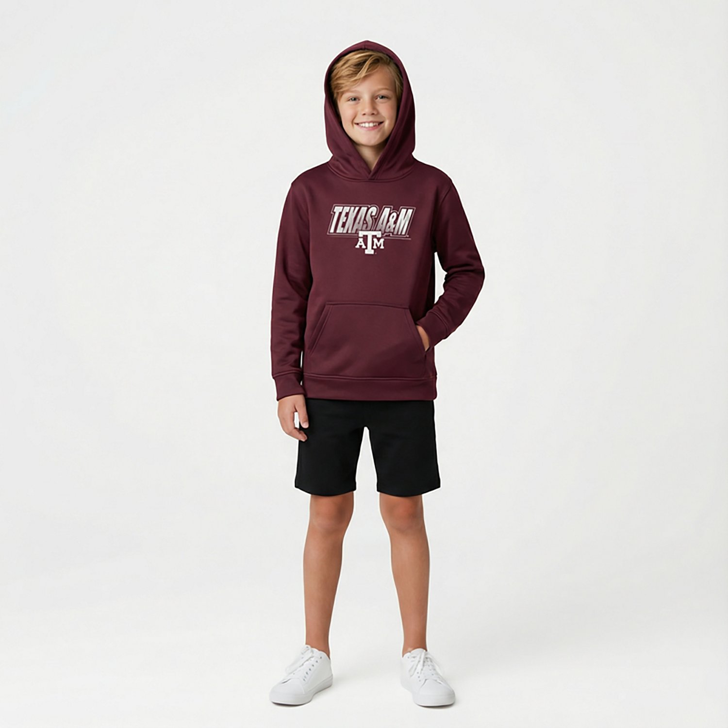 Stay warm while cheering on your team with the Outerstuff Youth Texas A&M Extra Point Hoodie. The polyester fleece construction helps keep you comfortable throughout the day, while the team graphic puts your fandom on display.