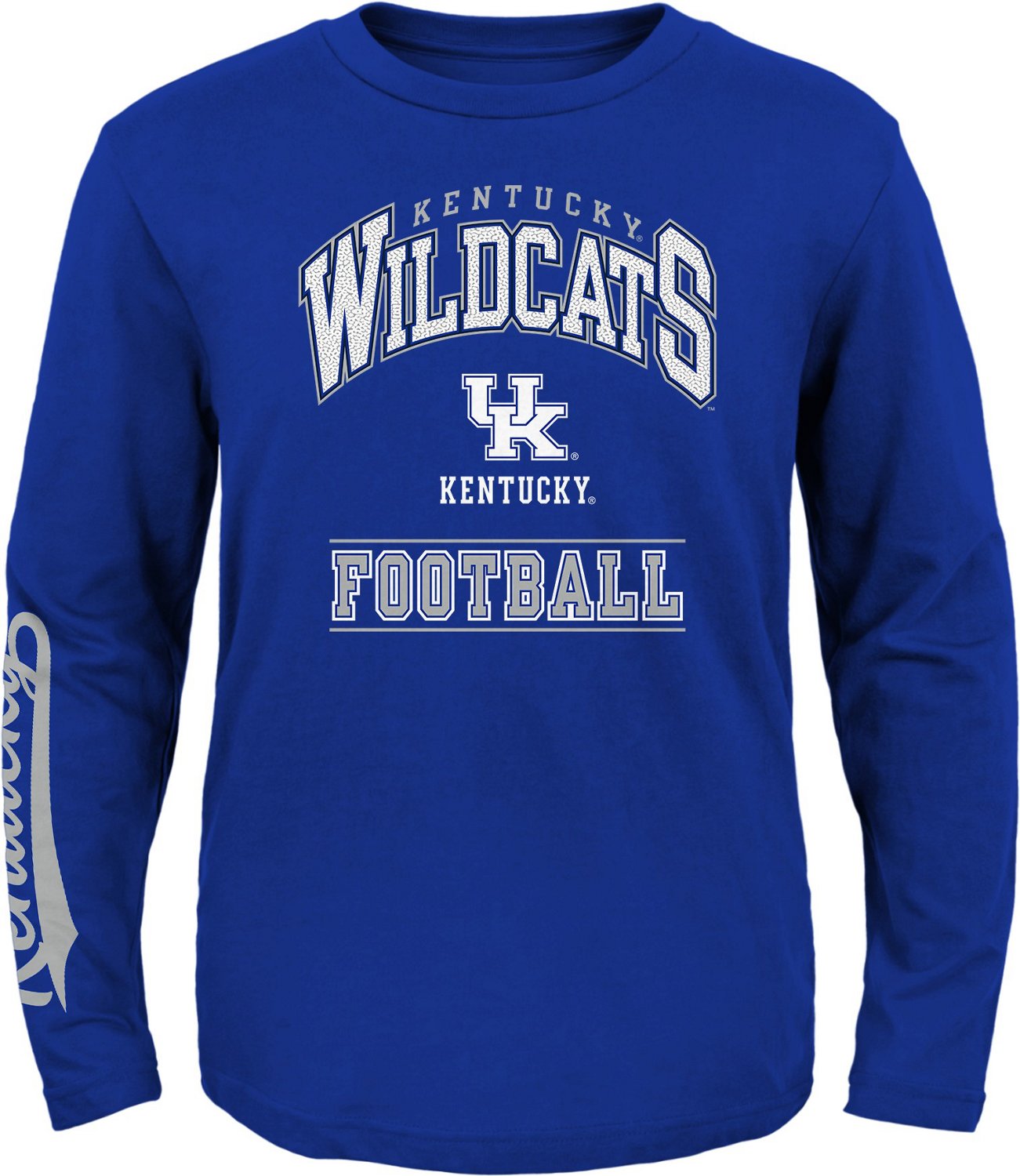 Put your fan status on display with the Outerstuff Youth University of Kentucky Big Timer Long Sleeve T-shirt. This shirt is made from 100% 30s cotton jersey for comfortable wear. The screen-printed school graphics make it easy to see you root for the UK Wildcats.