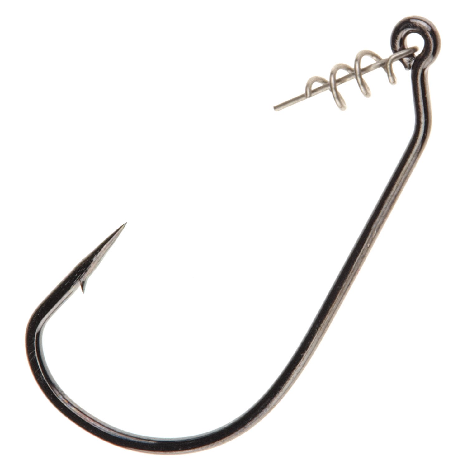 Permanently secure baits with the Owner TwistLOCK™ 3X Single Hooks with Centering Pins. The TwistLOCK™ Centering-Pin Spring attached to each eye allows you to insert the pin in the center of the nose of a soft plastic bait and twist the bait onto the coil spring for long-lasting rigging. The bass hooks feature open gaps for effective hook sets and Super Needle Points.