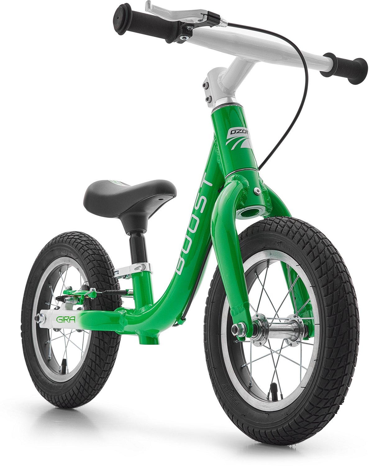 Kids hit the road in style with the Ozone 500 Boost 12 in Bicycle. Designed to improve stability for new riders, the bicycle features an upright seating position and a steering limiter to prevent overturn. The aluminum alloy frame and rims are lightweight for easy riding while ergonomic grips and a padded saddle enhance comfort.