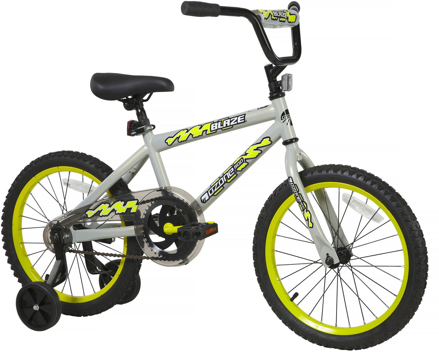 Ride in style with the Ozone 500 Boys’ Blaze 18 in Bike. The steel frame affords durability, while the coaster and front hand brakes allow for safe stopping. The training wheels help new riders learn to balance, and the custom graphics deliver an exciting look.