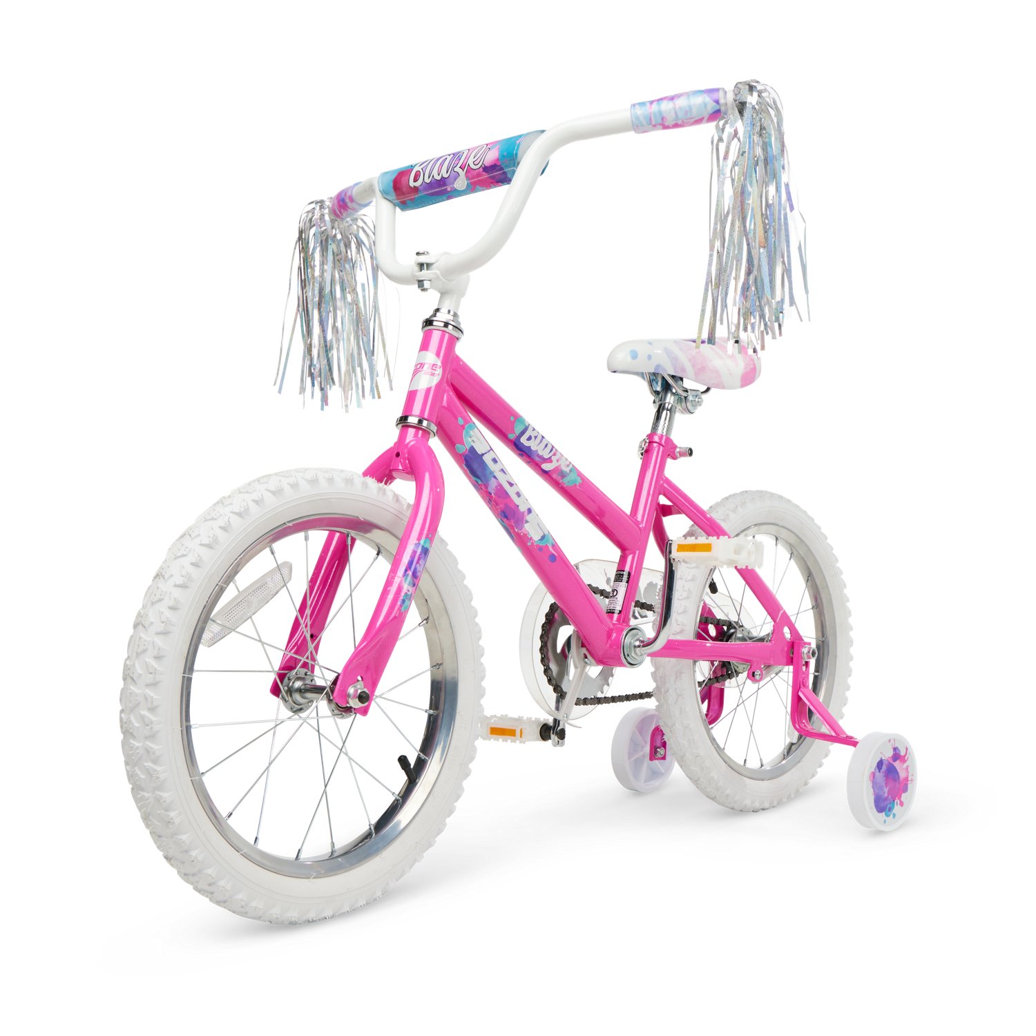 Your child can enjoy their ride with the Ozone 500 Girls' Blaze 16 in Bike. The tubular steel frame provides lightweight durability, while the padded saddle seat can be adjusted for a comfortable ride. The P1001 tires provide durable traction on rough terrain, and the handlebars with streamers provide a fun touch.