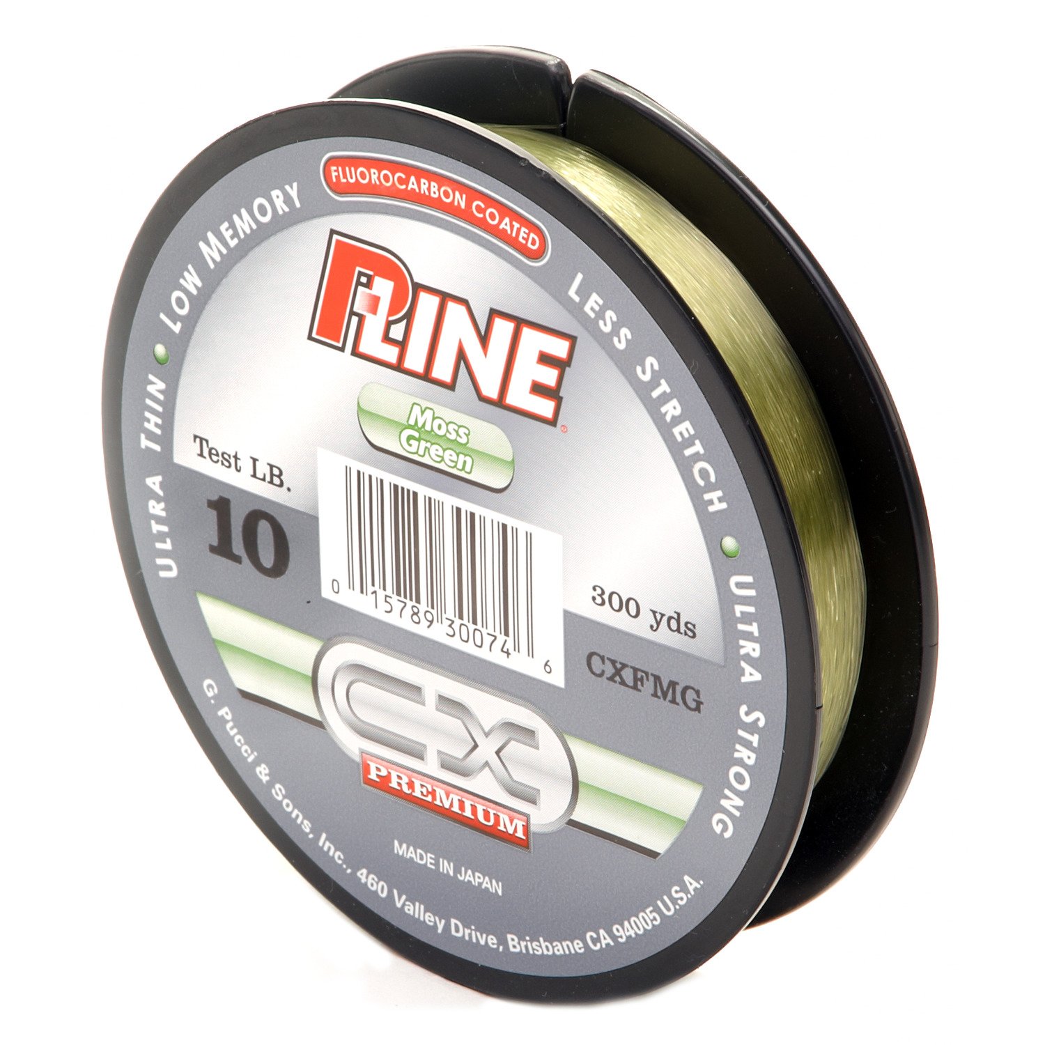 The P-Line® CX Premium 10 lb. - 300 yards Fluorocarbon Fishing Line features low memory and limpness to eliminate tangles on spinning reels and improve casting distance on baitcasting reels. The fluorocarbon-silicone coating virtually eliminates water absorption so cold water and weather have little effect on line performance, and low stretch helps you feel fish biting.