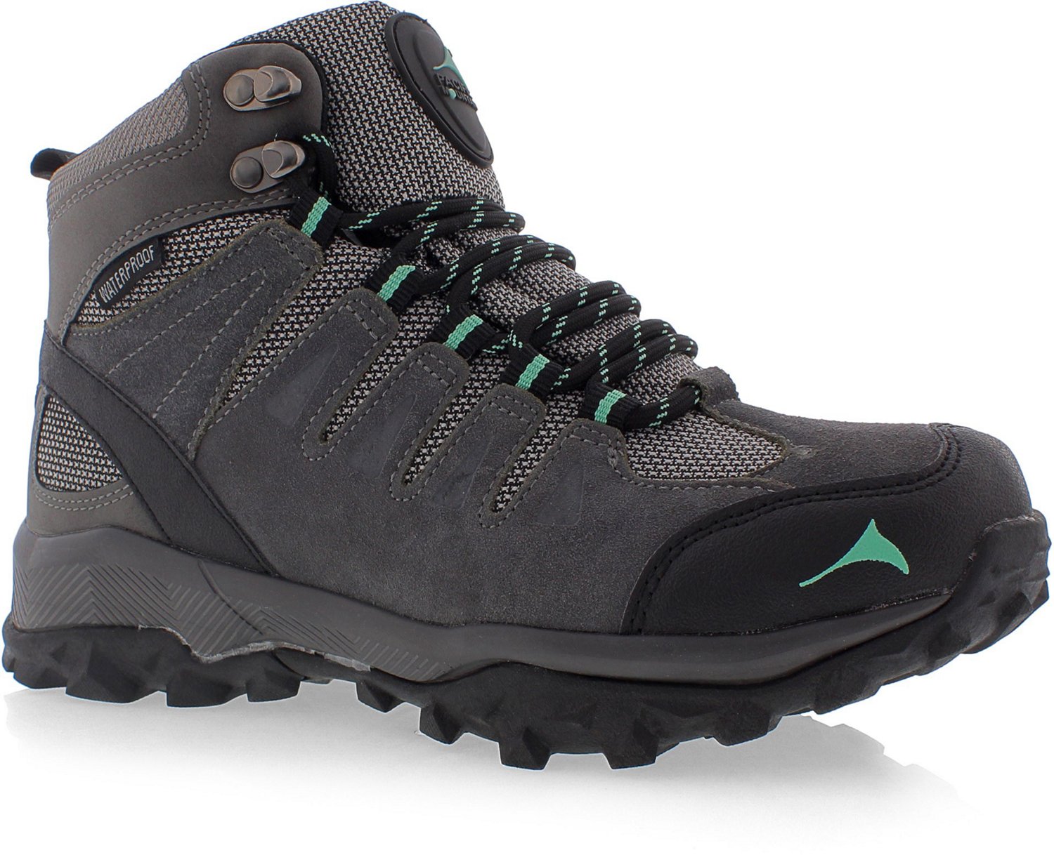 Enjoy your next hike wearing the Pacific Mountain Women's Boulder Mid Waterproof Hiking Boots. The MultiGrip rubber outsoles prevent slipping, and the waterproof membrane construction helps keep you dry. The cow suede leather, mesh and synthetic upper fabric provides ventilation and long-lasting dependability, and the heel cup inserts ensure optimal support.