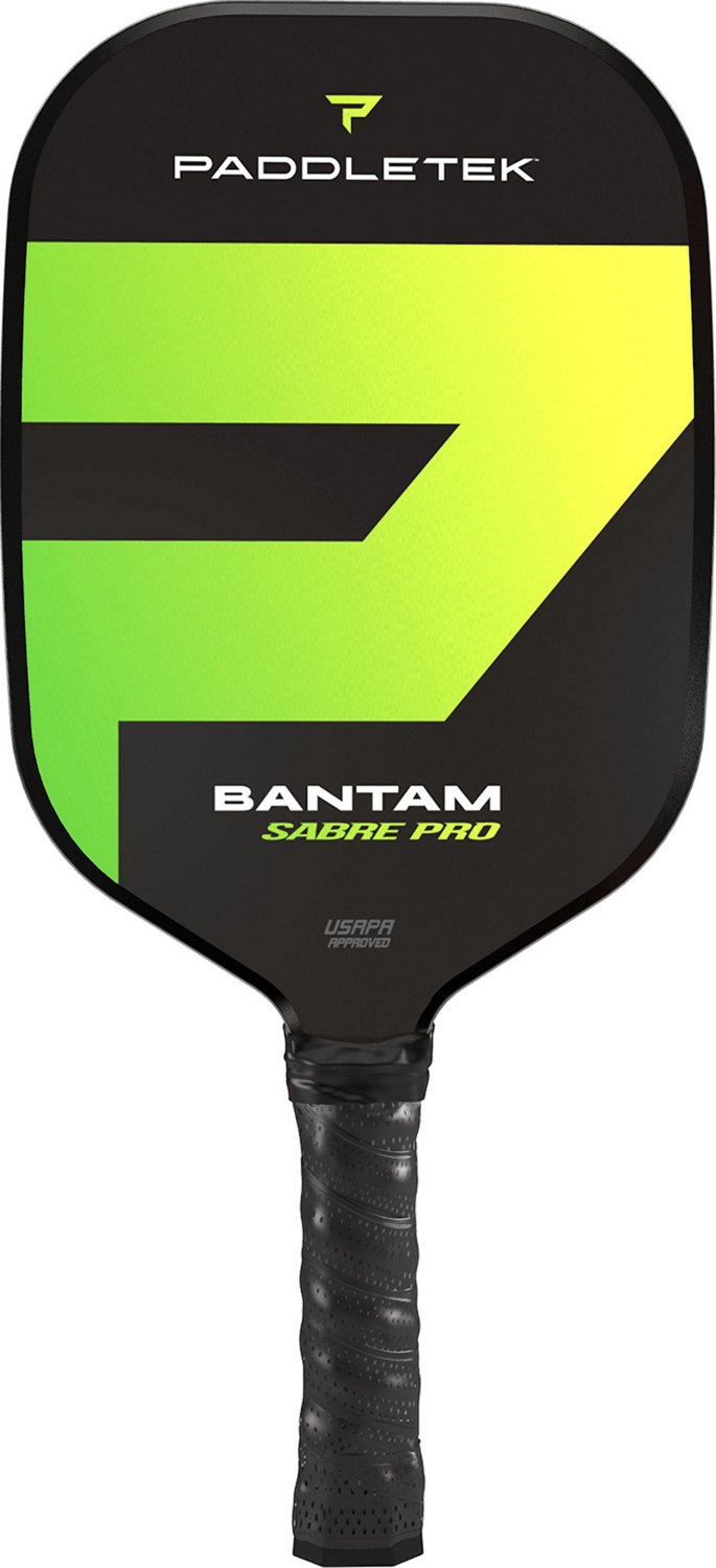 You'll be the player to beat when you utilize the Paddletek Bantam Sabre Pro Pickleball Racquet. The finely-tuned design boasts a longer grip to reduce unused playing surface. Its overall longer length helps increase speed and power at the point of contact, and the velvet-textured surface offers lasting spin with each hit.