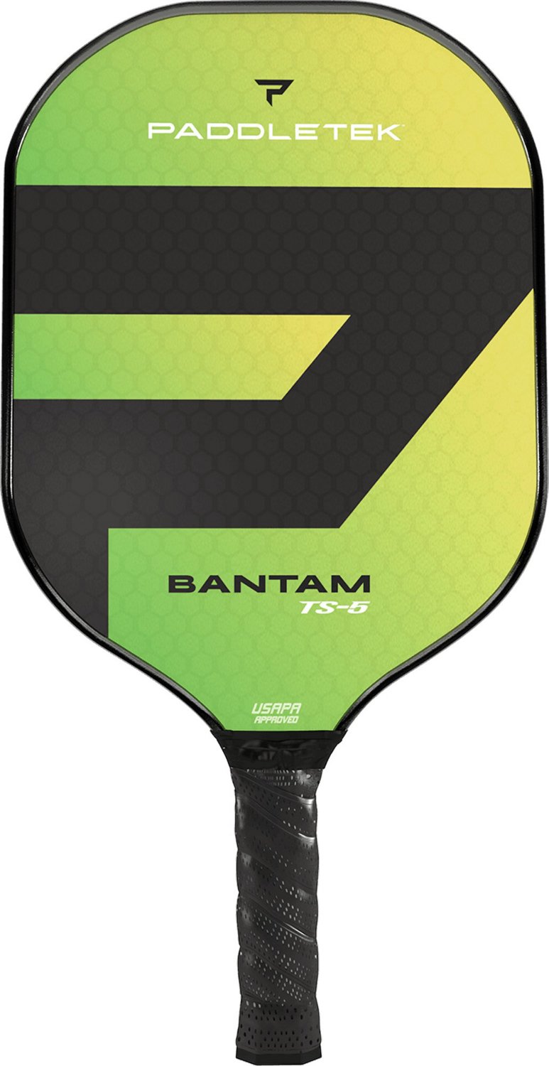 Command the court with the Paddletek Bantam TS-5 Pickleball Racquet by your side. This lightweight paddle is designed with a textured fiberglass face to improve spin control, maneuverability and speed each time you hit the ball. Its Bantam Polycore affords responsive returns and high power.
