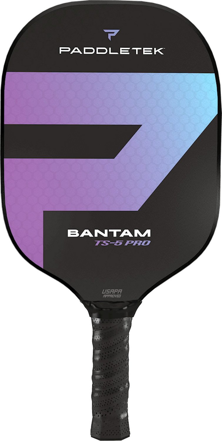 Dominate your opponents with the Paddletek Bantam TS-5 Pro Pickleball Racquet. Integrated Smart Response Technology offers advanced power and force that remains controllable. The large playing surface and sizeable sweet spot afford incredible forgiveness, and the grip is made with plenty of tack to give you a secure hold.