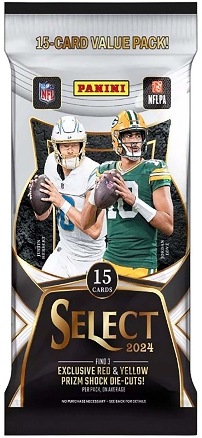The Panini 2024 Select Football Fat Pack contains a total of 15 cards and features designs from the 2023 season.
