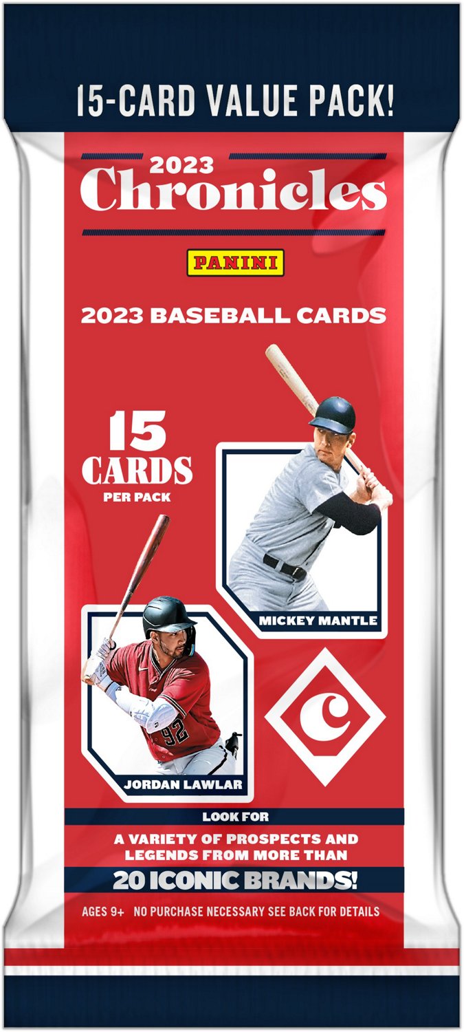 Build up your baseball card collection with the Panini Chronicles 2023 Baseball Cards Fat Pack. This pack is perfect for avid collectors, as each card features a 2023 player with an eye-catching design. This peggable pack has 15 cards and is made in the USA.