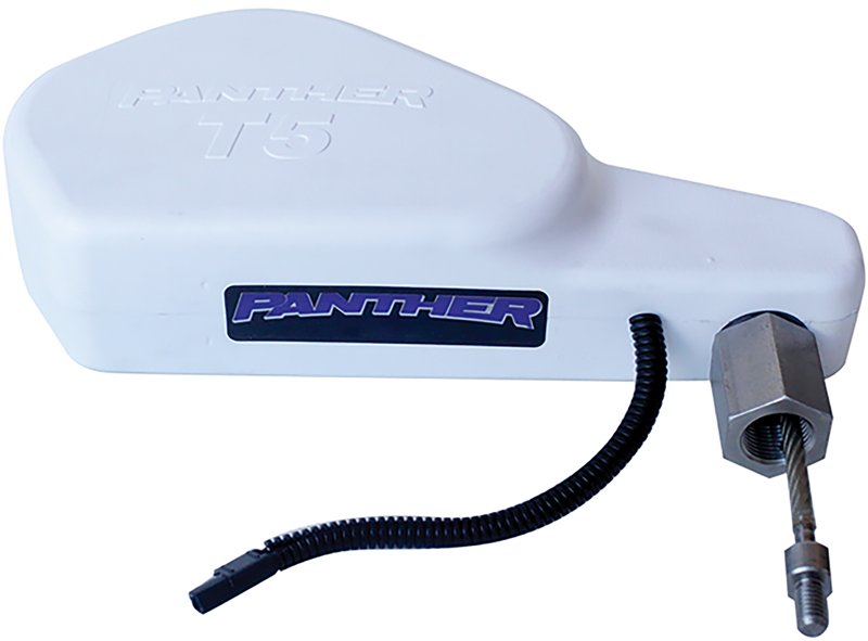 Add power steering to your kicker motor with limited space using the Panther Marine Model T-5 Through Tilt Tube Electro Steer. This compact device is water-resistant for lasting durability and fits in spaces as small as 4.5 inches. It is easy to install and can be installed without drilling any holes if the tilt-tube is threaded. The 2-button tethered remote allows for easy controlling.