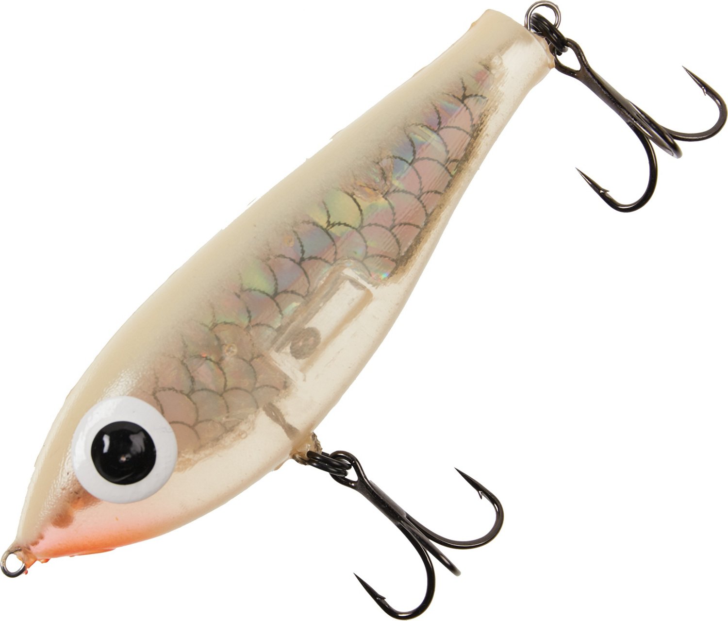 Get the biggest catch with the Paul Brown's Fat Boy Pro Sinking Twitchbait. The bait has a low-frequency rattle and a bright pattern with eyes to provide a realistic look, and the flat-sided scaled prism insert reflects light from the water. Double nickel hooks secure your catch. 7/8 ounces. 3-1/2 inches long.