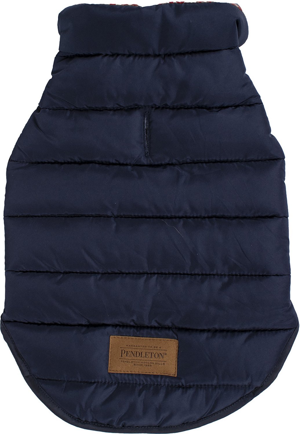 Keep your pet warm and cozy no matter when or where adventure strikes with the Pendleton Pilot Rock Puffer Dog Coat. This puffer coat has a polyester shell that is reversible with a patterned liner. The polyester batting is quilted to help ensure your dog stays warm. With adjustable hook-and-loop closures and a cutout for the leash, this coat is easy to put on and take off.