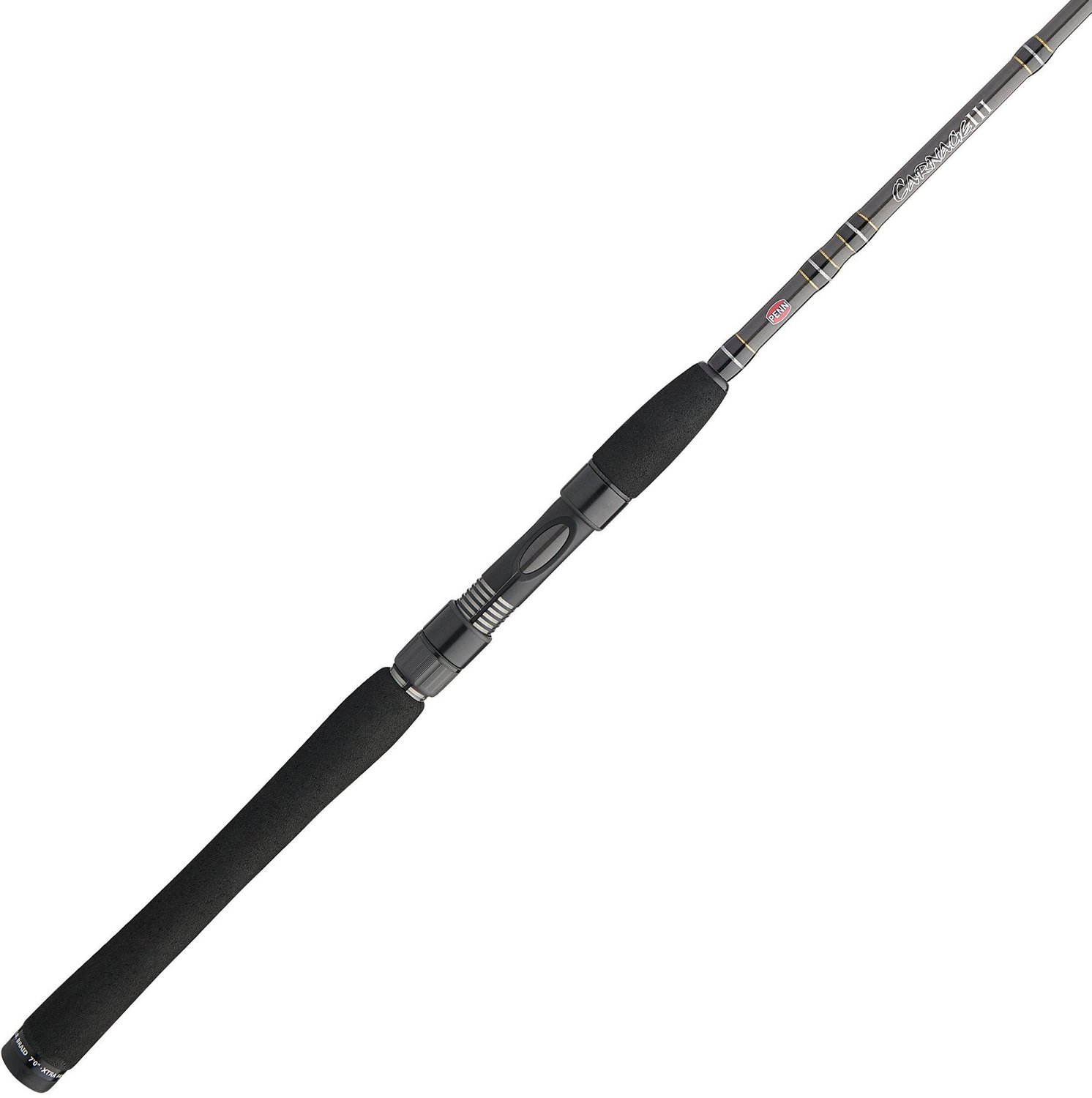 Go to work on your next fishing trip with the PENN Carnage III 7 ft ML Inshore Spinning Rod. The SLC2 carbon blank affords durability, while the hypalon handle offers grip. The Fuji® K-Guides and Sea-Guide® provide smooth action, and the Fuji® reel seat ensures comfort.
