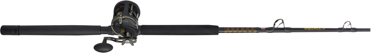 Cast confidently with the PENN Squall II 6 ft 6 in MH Level Wind Combo. The tubular glass and graphite composite blank provide lightweight handling, while the 3+1 shielded stainless steel ball bearings ensure smooth action. The Fast Gear Access side late allows for easy maintenance, and the Dura-Guides afford durability.