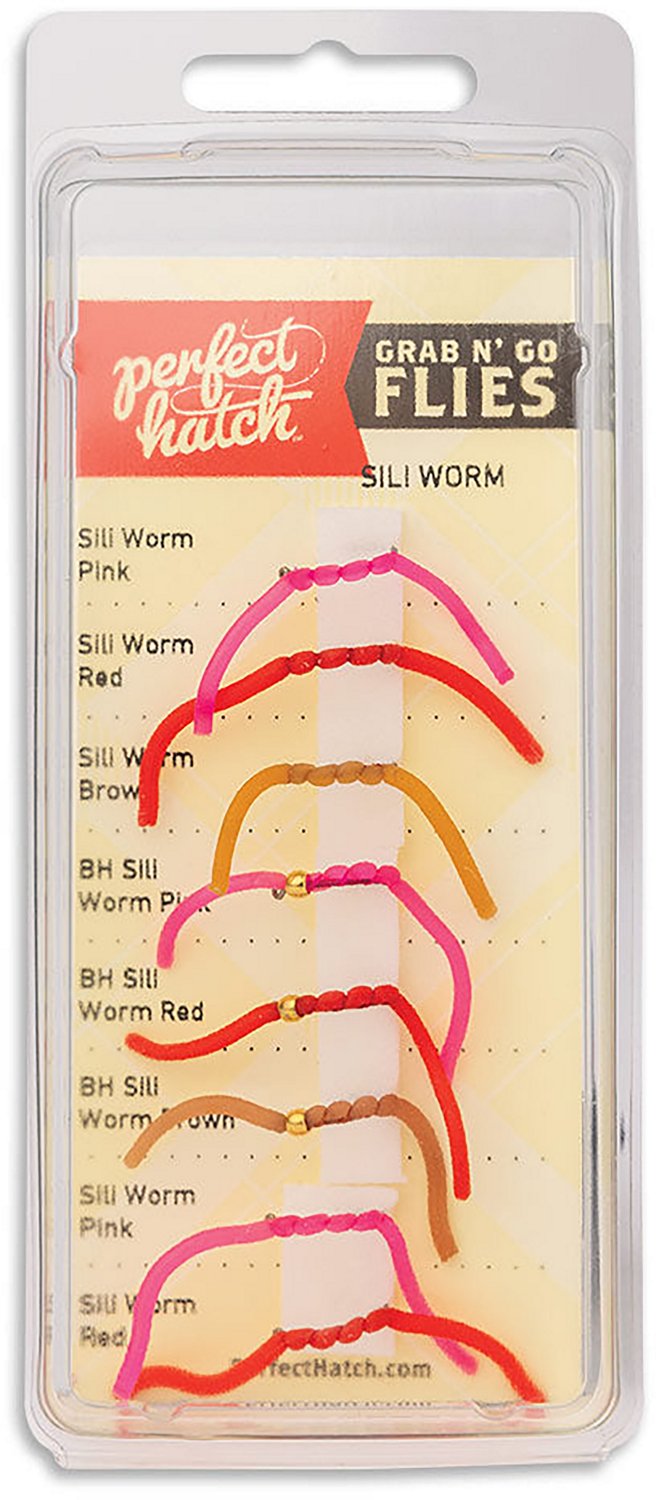 Reel in the big ones with the Perfect Hatch Grab N Go Silly Worm Assortment Soft Fly Baits 8-Pack. These worm flies move realistically underwater, enticing trout to bite. When they do bite, the high-carbon chemically sharpened hooks keep them on the line.