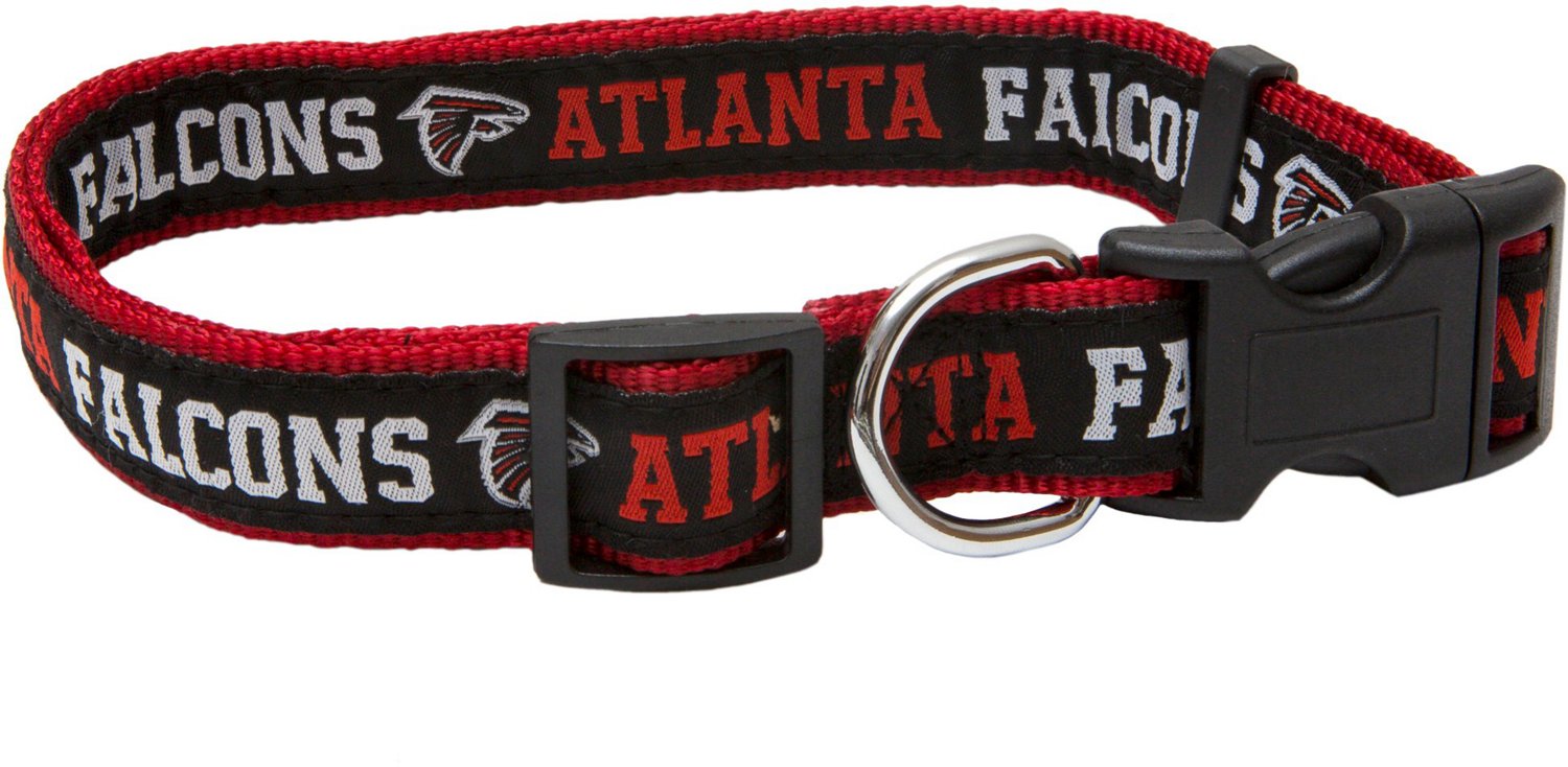 Show your pup's love for the Falcons with the Pets First Atlanta Falcons Dog Collar. The adjustable buckle provides a comfortable fit, and the silver D ring offers easy attachment for dog tags and leashes. The Falcons design shows team spirit, while the nylon construction provides long-lasting durability.